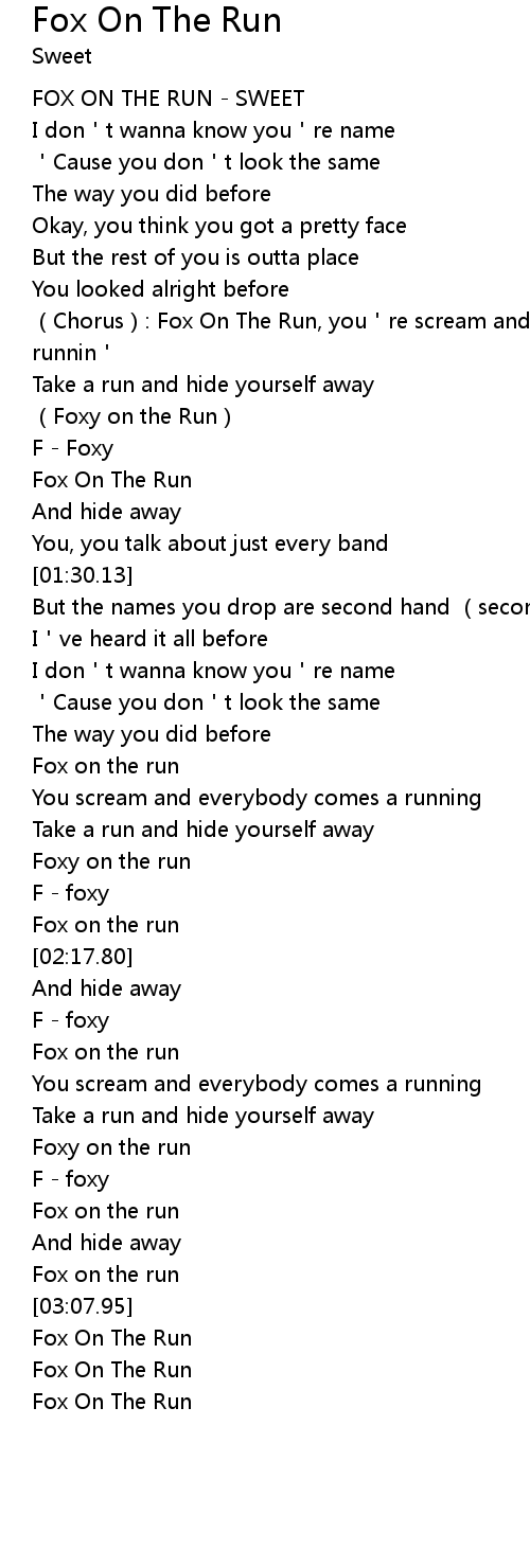| [00:51.95] | Chorus: Fox On The Run, you re scream and everybody comes runnin |