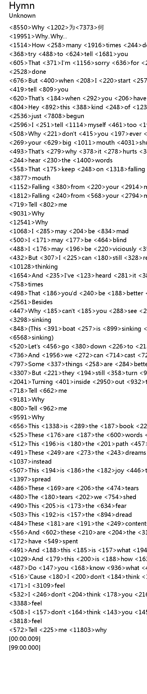 | [01:10.49] | 620 That' s 184 when 292 you 206 have 334 to 226 tell 1207 me |