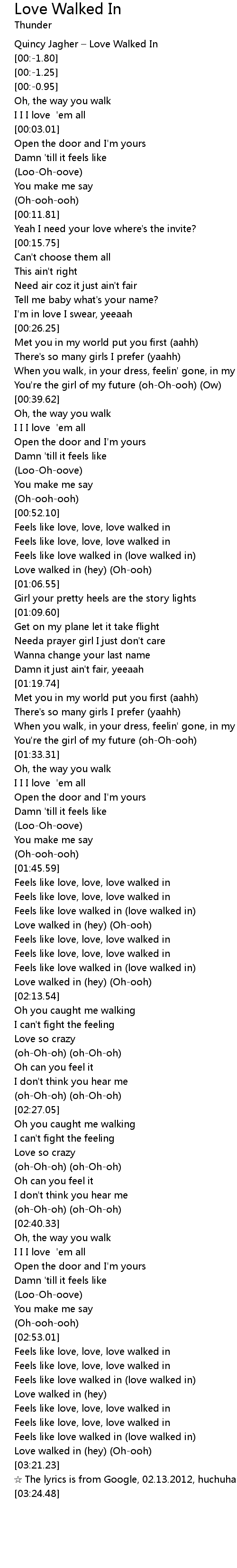 | [00:59.34] | Feels like love walked in (love walked in) |