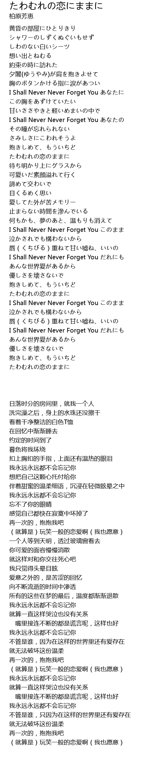 | [04:01.70] | I Shall Never Never Forget You このまま |