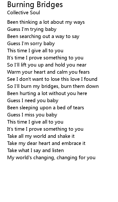 So I'll burn my bridges, burn them down |