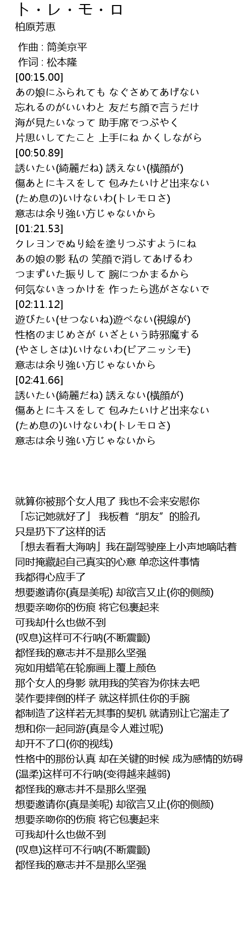 | [03:17.86] | (ため息の)いけないわ(トレモロさ) |