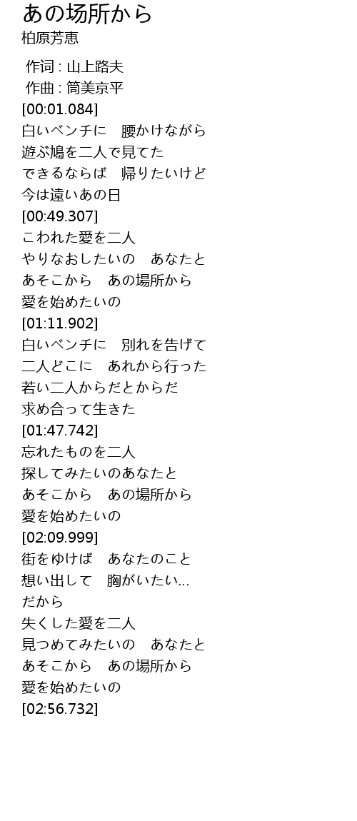| [00:34.469] | 遊ぶ鳩を二人で見てた |