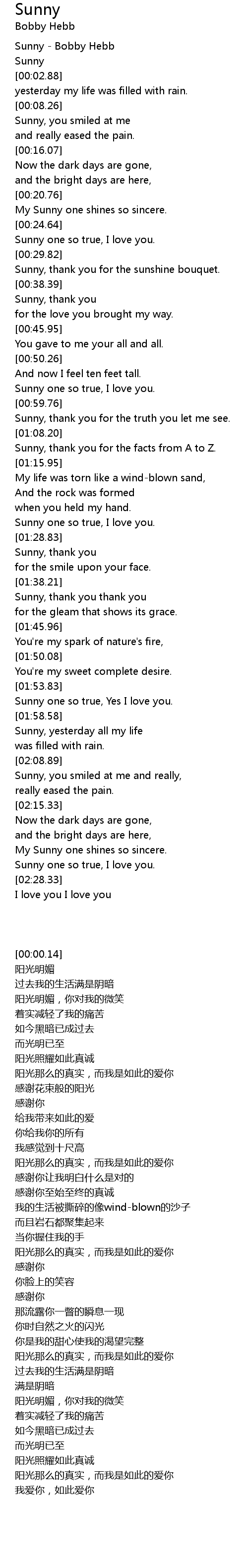 Sunny, yesterday all my life |