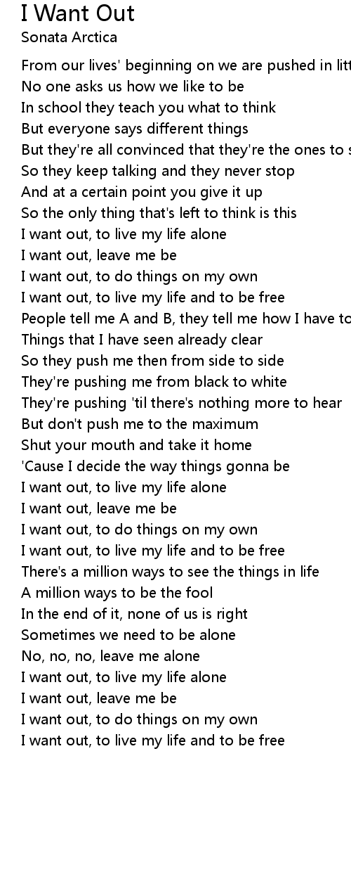 I want out, to live my life alone |