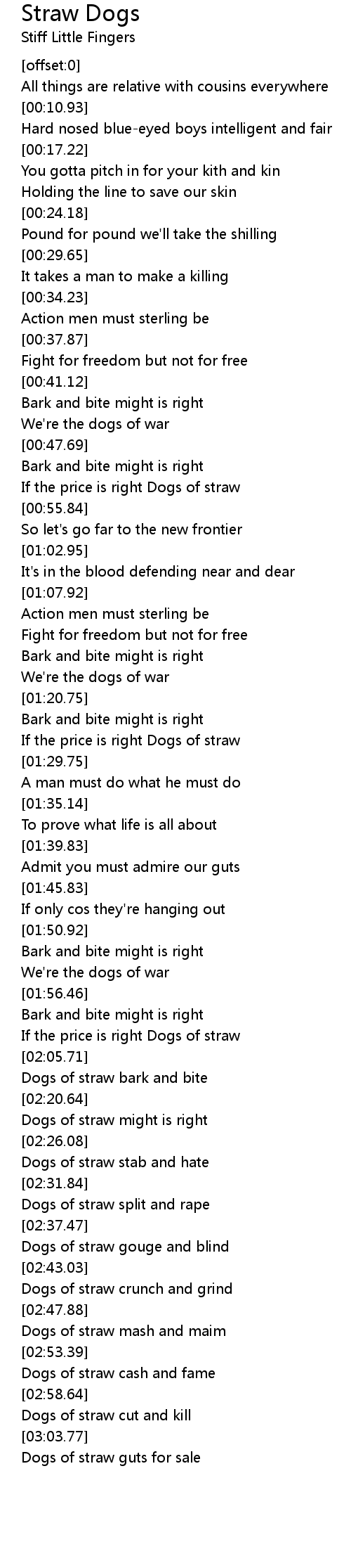 [01:59.89] If the price is right Dogs of straw