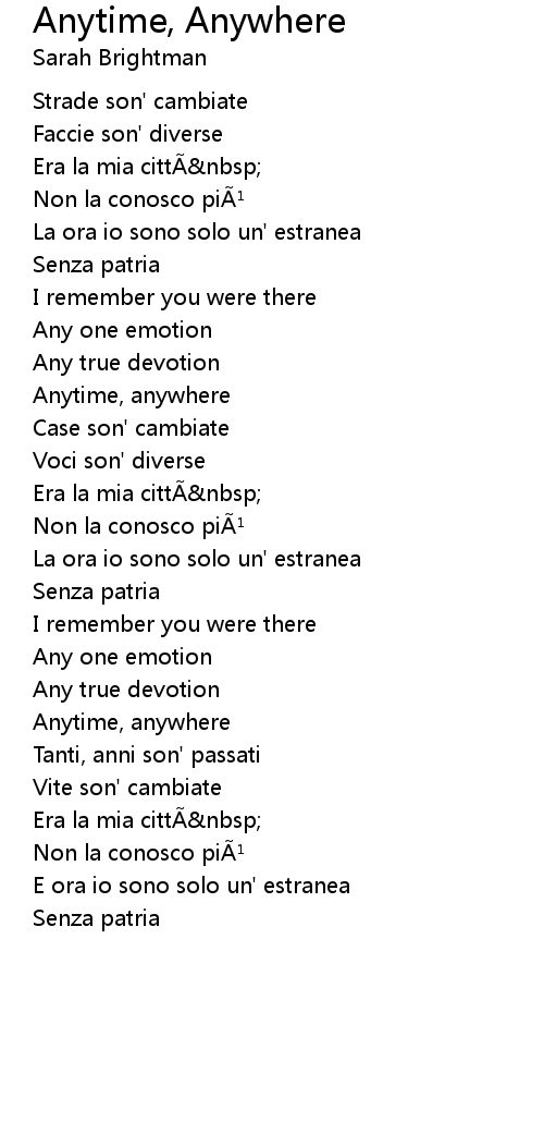 | 歌曲 | Anytime, Anywhere |