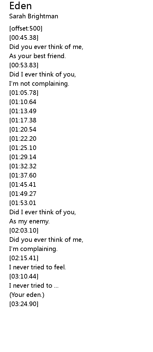 | [02:31.34][01:22.20] | I never tried to reach. |