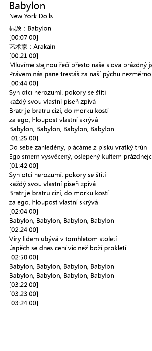 | [03:02.00] | Babylon, Babylon, Babylon, Babylon |