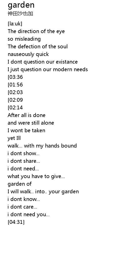 | [01:02][03:36][04:00] | I will walk... with my hands bound |