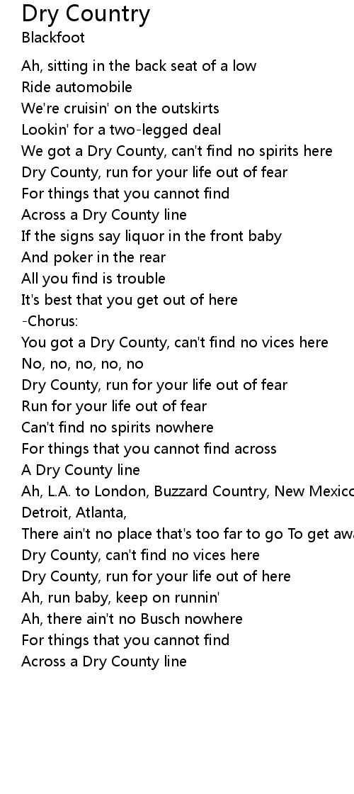 | We got a Dry County, can't find no spirits here | |
