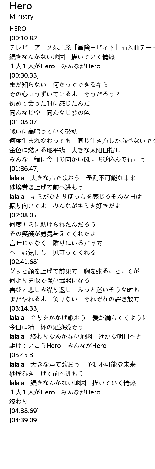 | [03:38.33] | 駆けていこうHero みんながHero |