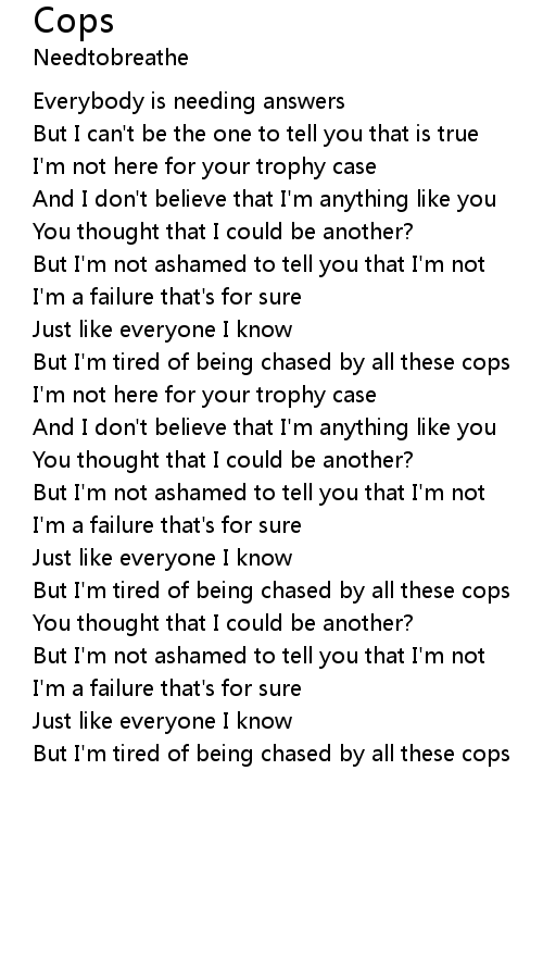 But I'm tired of being chased by all these cops |