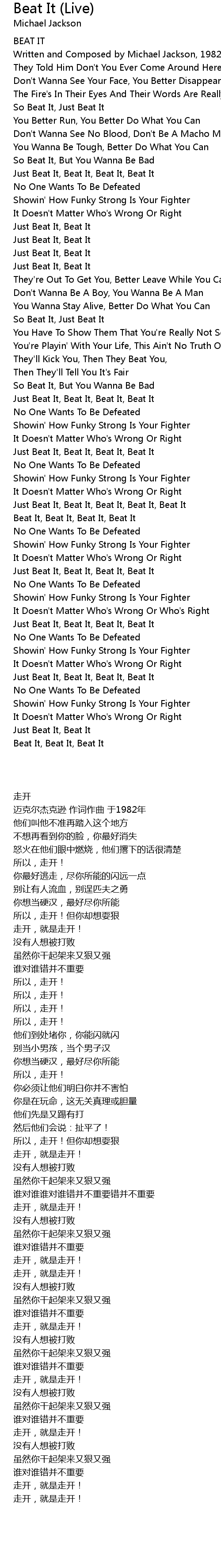 Beat It, Beat It, Beat It, Beat It |