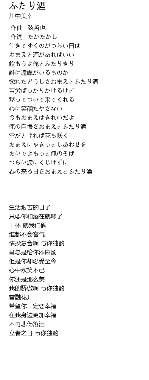 俺の自慢さおまえとふたり酒 |