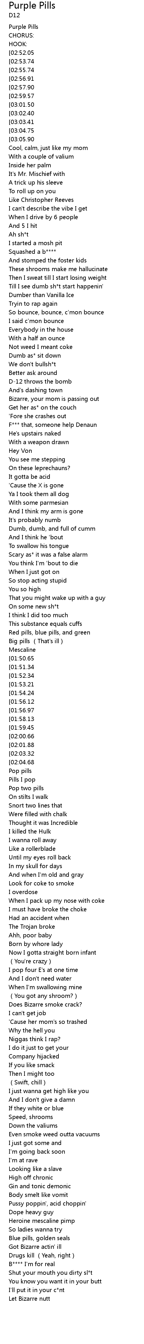 | [02:45.70] | Speed, shrooms |