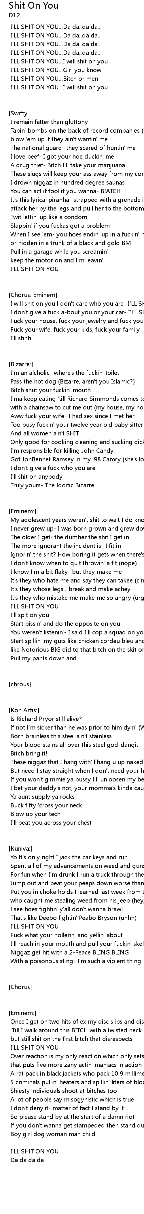 If you won't gimmie ya pussy I'll unloosen my belt and (I'LL SHIT ON YOU) |
