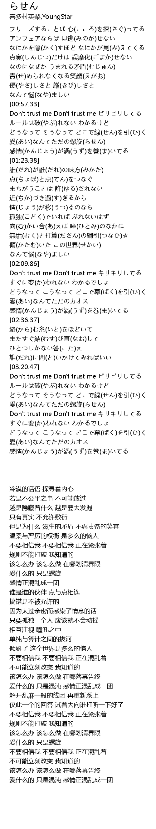 | [03:41.44] | Don't trust me Don't trust me キリキリしてる |