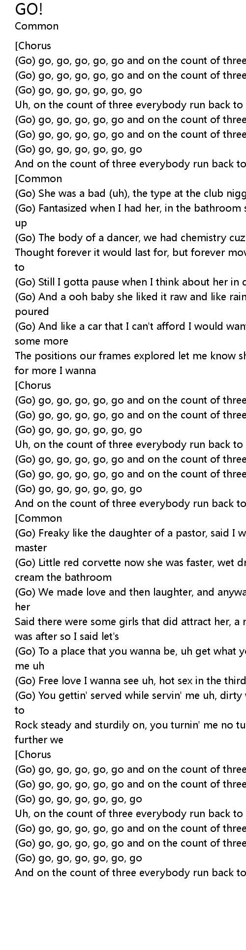 (Go) go, go, go, go, go and on the count of three |