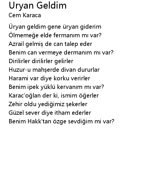| Üryan geldim gene üryan giderim | |