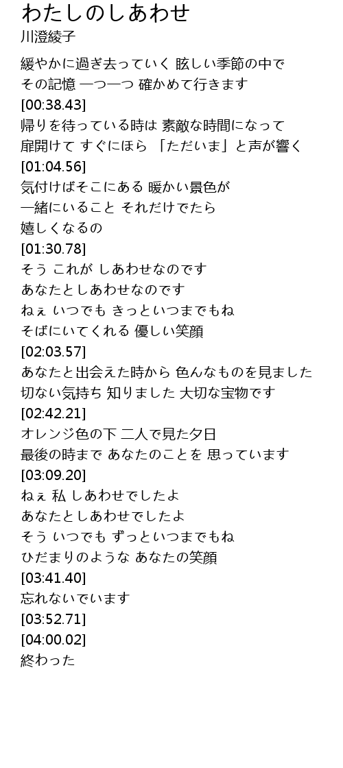 | [01:32.14] | そう これが しあわせなのです |