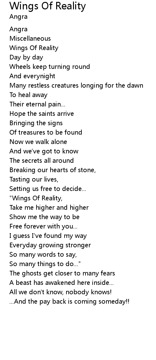 "Wings Of Reality, |