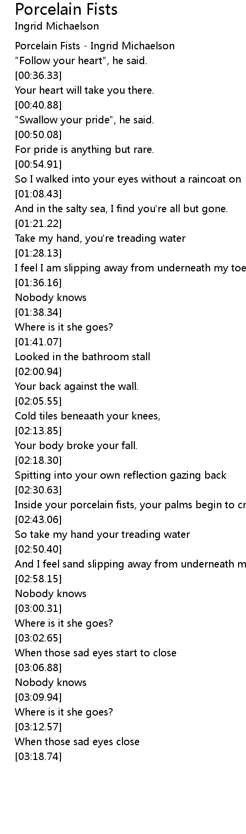 [00:01.97] Porcelain Fists - Ingrid Michaelson