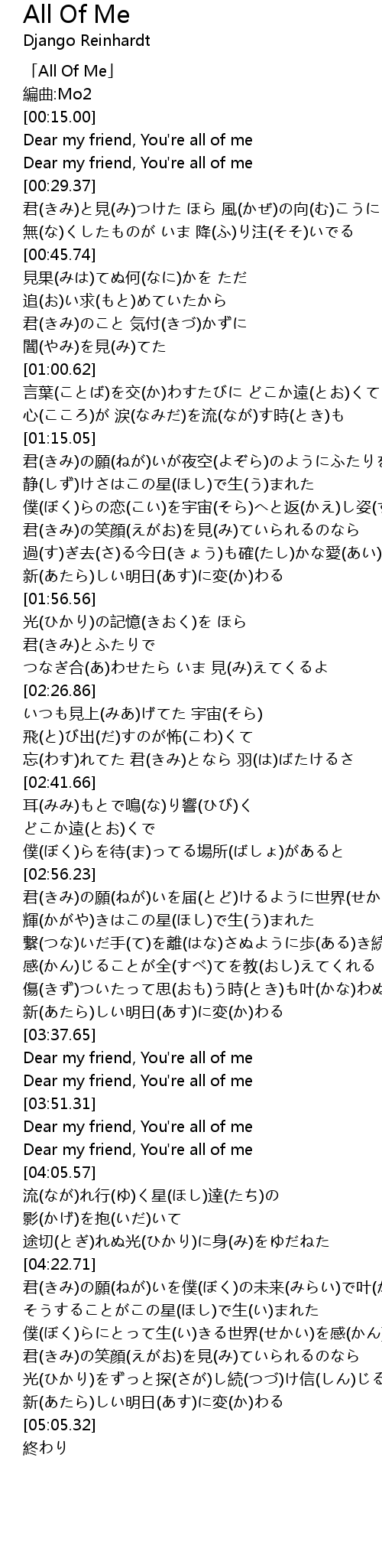 | [00:18.21] | Dear my friend, You're all of me |