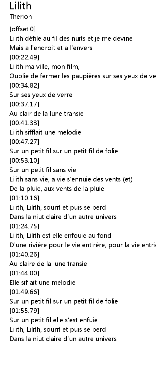 | [01:27.29] | Lilith, Lilith est elle enfouie au fond |