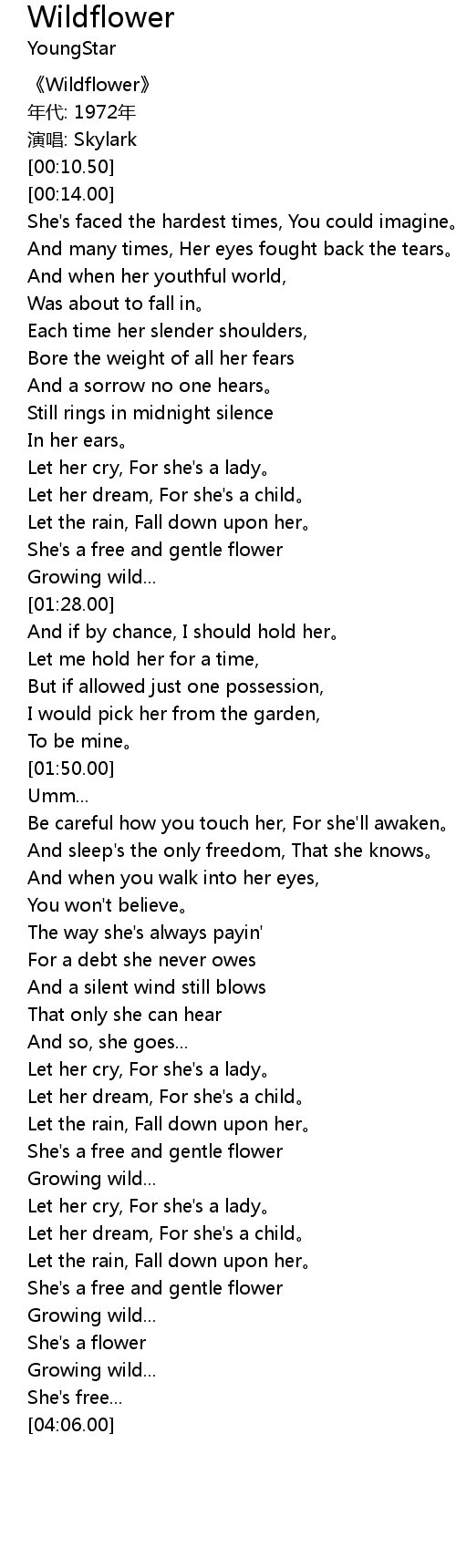 | [00:58.80] | Let her cry, For she' s a lady. |