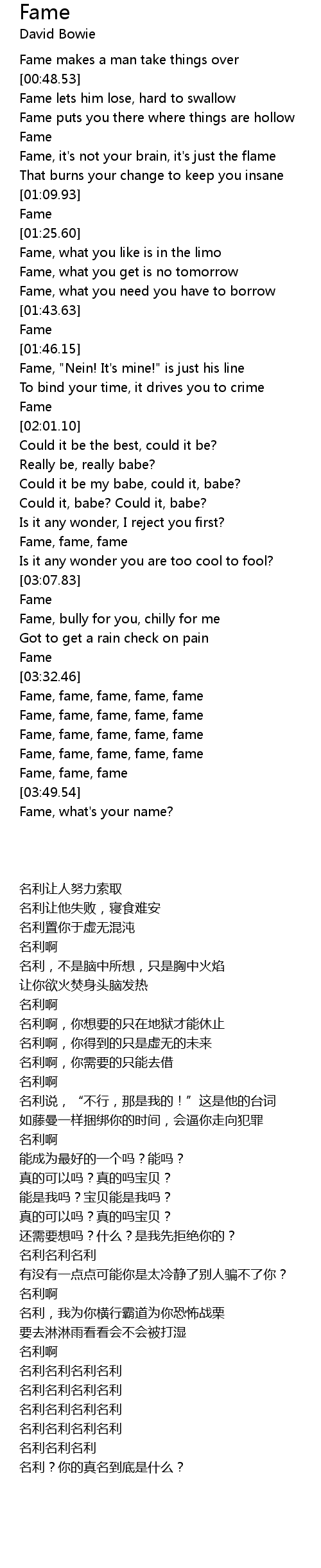 Fame, fame, fame, fame, fame |