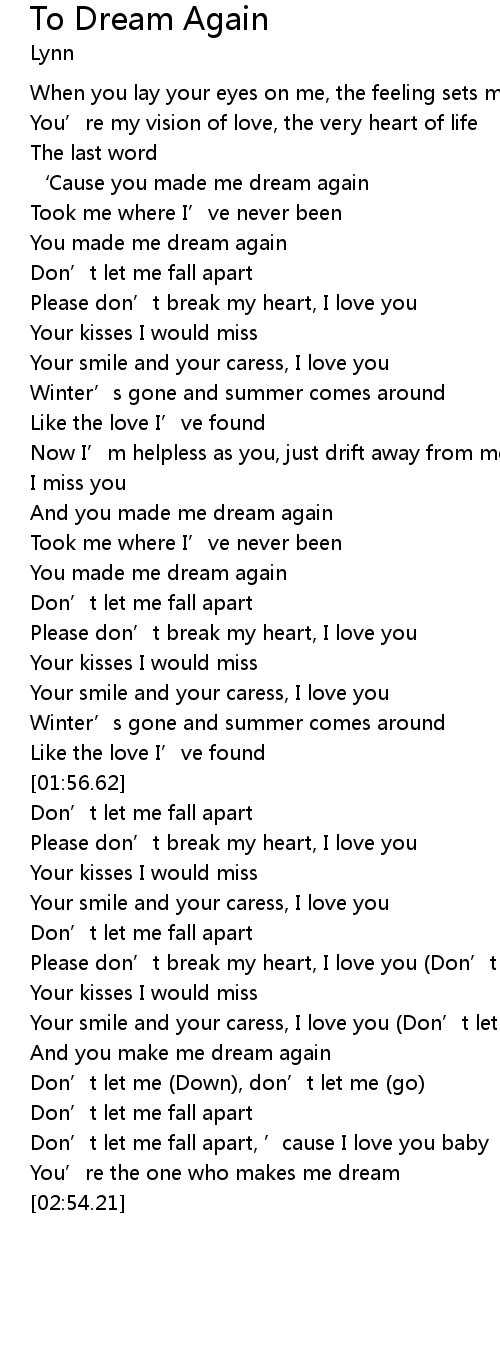 | [02:19.10] | Please don’t break my heart, I love you (Don’t let me fall apart) |