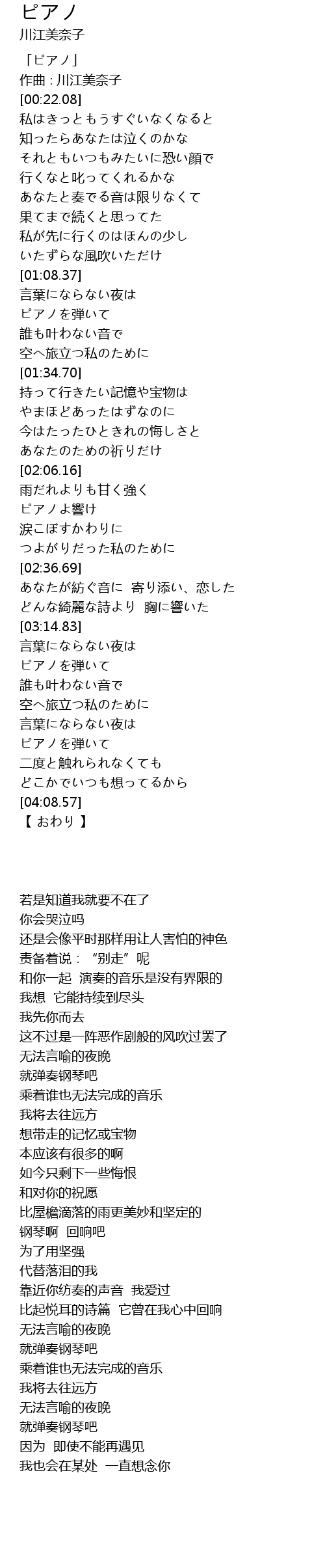 | [00:01.08] | 「ピアノ」 |
