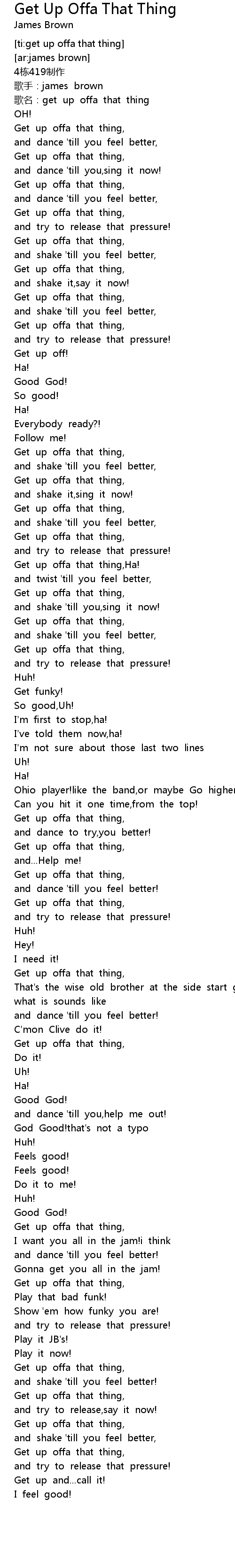 | [00:01.790] | 歌名:get up offa that thing |