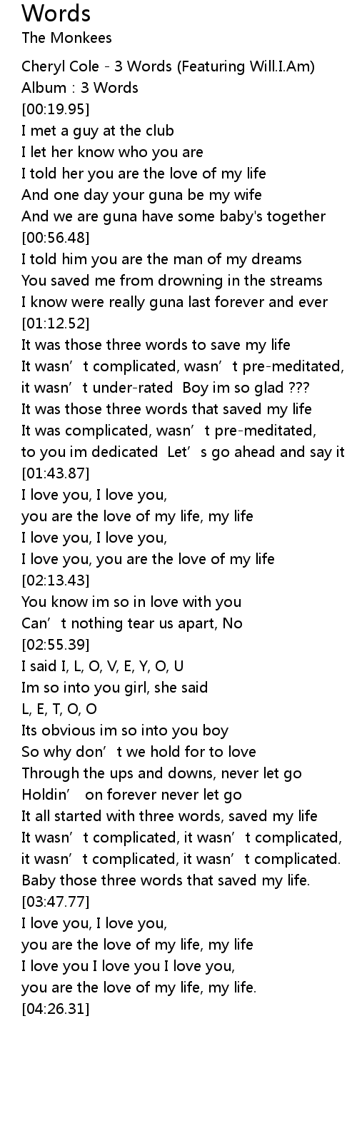| [03:41.37] | Baby those three words that saved my life. |
