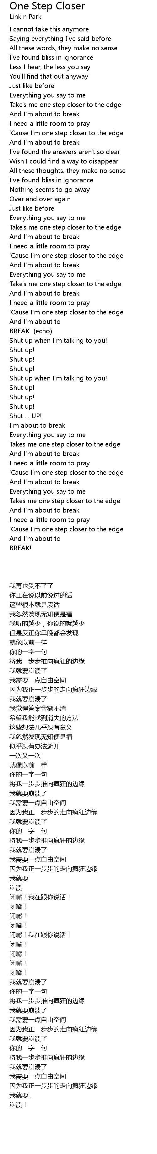 'Cause I'm one step closer to the edge |