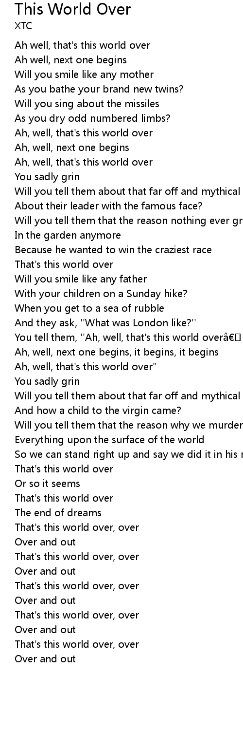 | That's this world over, over | |