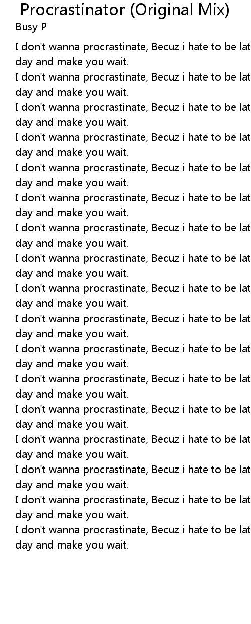 I don't wanna procrastinate, Becuz i hate to be late on the serious? day and make you wait. |