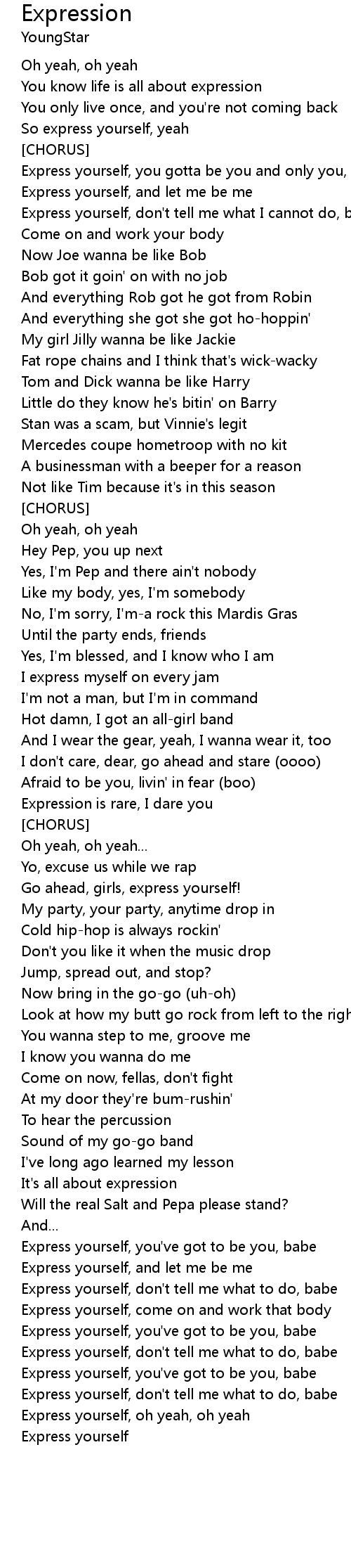 Express yourself, oh yeah, oh yeah