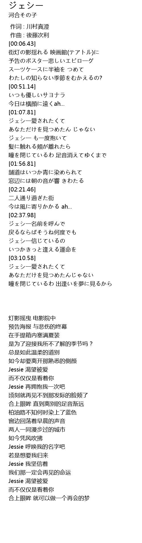 | [02:38.37] | Jessie 呼唤我的名字吧 |