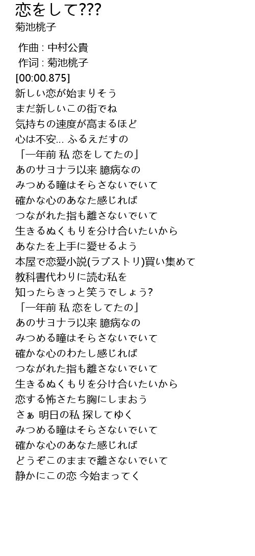 | [00:00.291] | 作词 : 菊池桃子 |