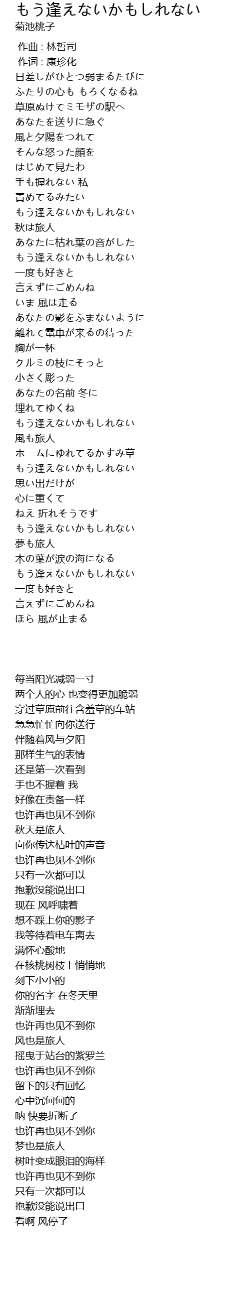 もう逢えないかもしれない |