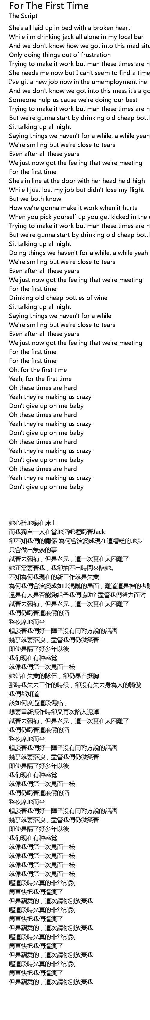 For The First Time 歌词