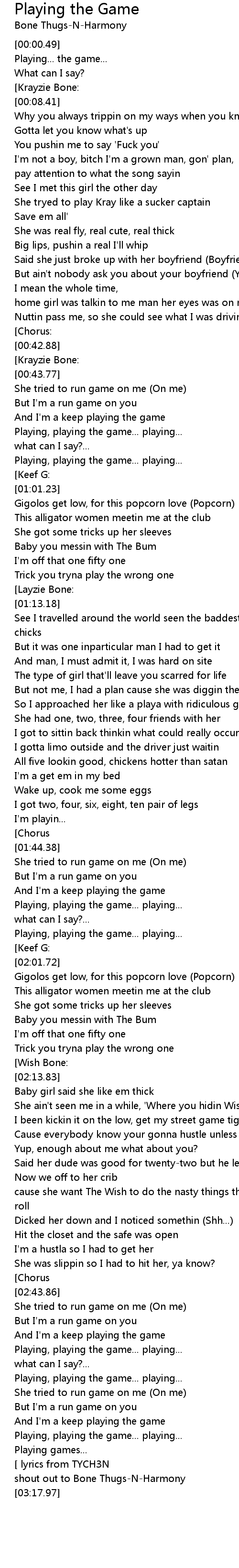 | [03:16.22]shout out to Bone Thugs-N-Harmony ] |