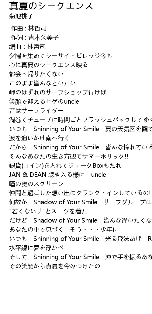 | [00:39.160] | 心に真夏のシークエンス映る |