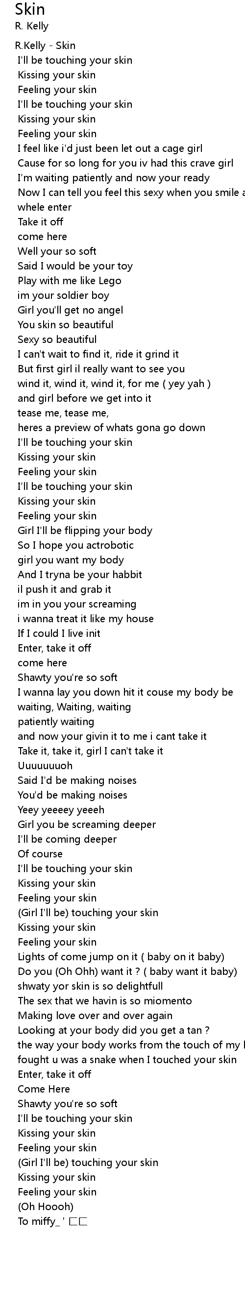 | Girl I' ll be touching your skin | |