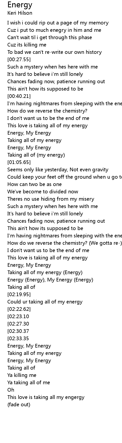 Taking all of my energy (Energy) |