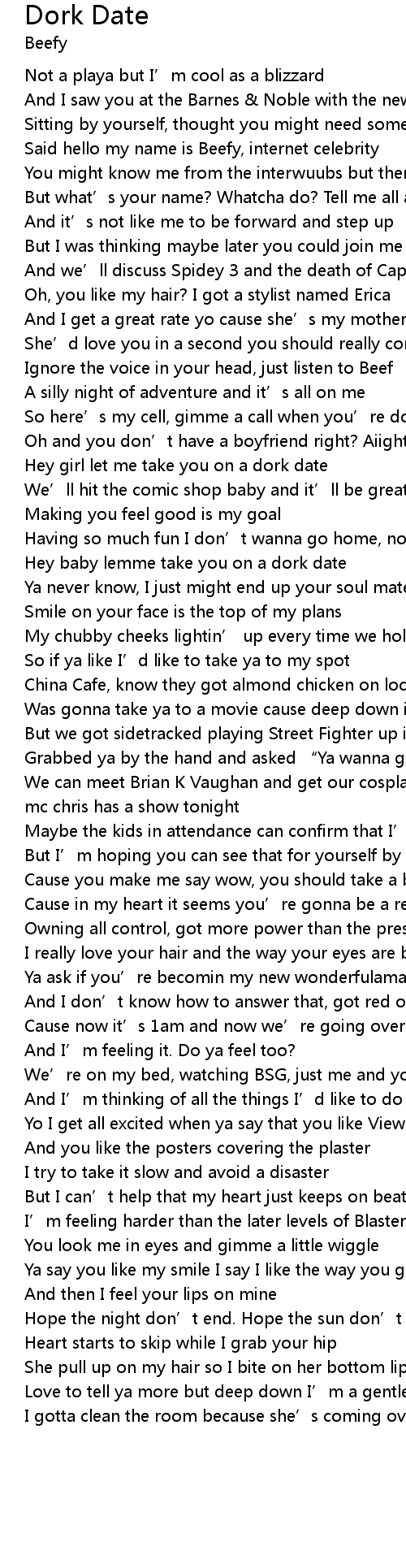 | Hey baby lemme take you on a dork date | |