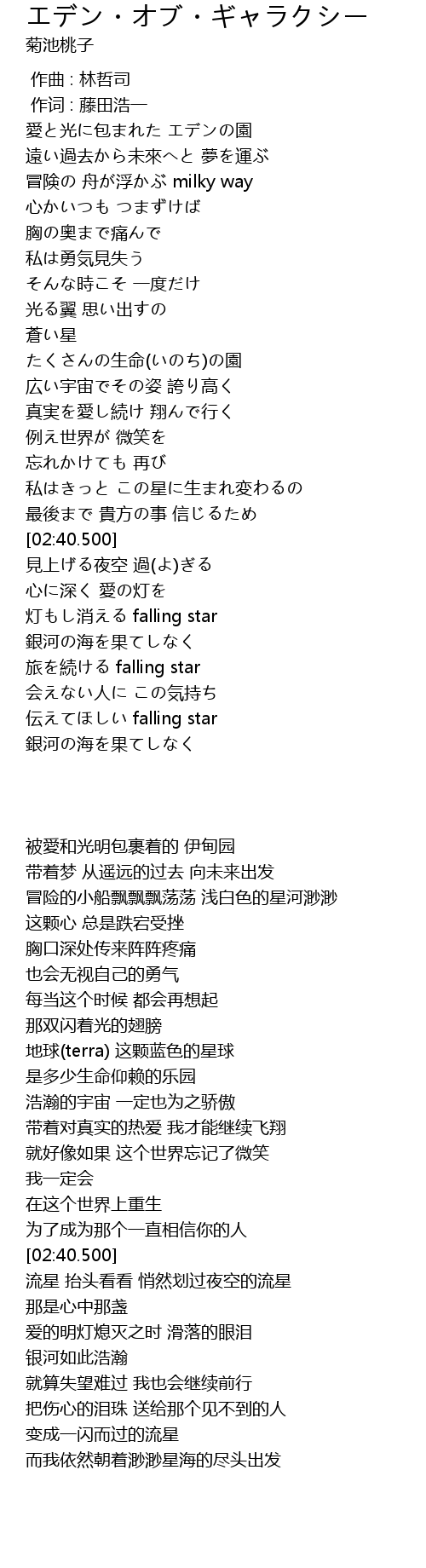 | [02:20.000] | 私はきっと この星に生まれ変わるの |