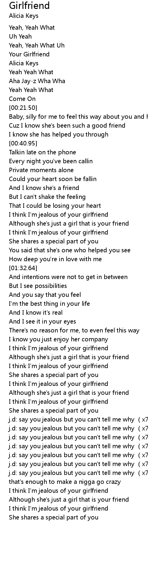 | [02:02.38] | I think I'm jealous of your girlfriend |